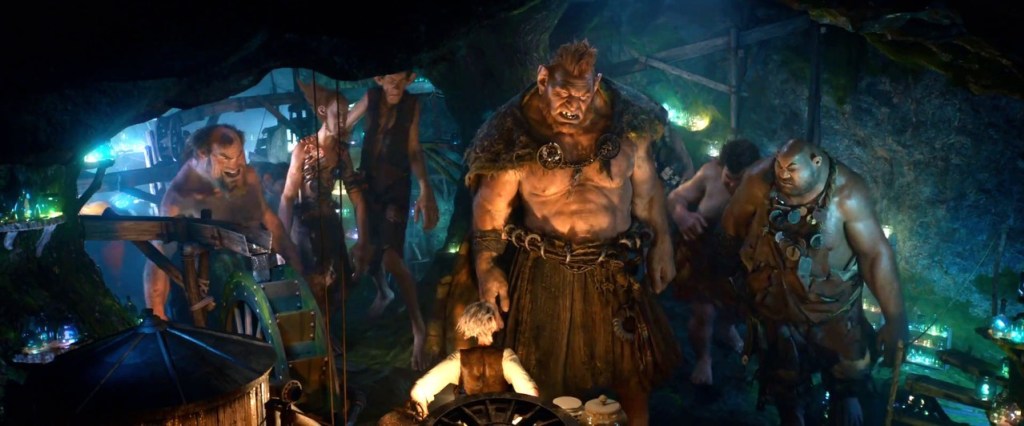 This brings us back to those aforementioned villains, and it’s here where The BFG falls flattest. As it turns out, the BFG is considered a “runt”, which means he’s picked on mercilessly by the ill-tempered 50-foot behemoths who also inhabit Giant Country. It’s possible to draw a connection here between the BFG and Sophie; both are parentless, and both appear to be victims of callous bullying. (We spend little time in Sophie’s orphanage, but one look at its gloomy hallways—plus cursory familiarity with the authority figures in Dahl’s oeuvre—is all that’s required to deem it uninviting.) But that idea never really sticks, probably because the other giants are all grotesque, one-dimensional slobs, as tedious as they are dim-witted. Dahl always took great joy in naming creatures, and here Melissa Mathison’s screenplay dutifully allots time for the BFG to identify each of his alliterative oppressors—they include Bloodbottler, Childchewer, and Gizzardgulper—but on screen, they’re all just CGI snores. The only distinguishable baddie is Fleshlumpeater (Jemaine Clement), but even he is a tiresome archetype of banal stupidity.