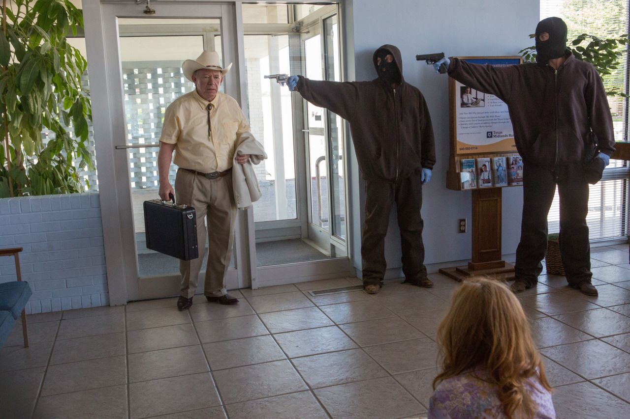 Director David Mackenzie establishes the film’s distinctive tone right from its electric opening scene, in which his camera first centers on a bank employee in a parking lot (Dale Dickey, from Winter’s Bone), then wanders toward Toby and Tanner’s car, and then finally follows the employee into the bank, which the brothers proceed to hold up. It’s a robbery that’s brisk, tense, sharply violent, and oddly colorful. Some of that lies in the genre execution, which Mackenzie imbues with sufficient verisimilitude (Toby and Tanner insist on only stealing loose bills from the drawers to avoid acquiring traceable funds, but they’re unable to access the safe because the teller lacks the key). But he also swiftly defines these siblings who, even though they wear masks, possess divergent personalities; Tanner’s angry shouts mark him as terse and volatile, whereas Toby’s wide eyes and anxious body language imply that he’s almost apologetic about his criminality.