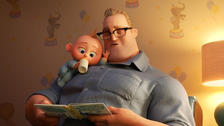 This contrast—the notion of the breadwinning mom and the stay-at-home dad—is hardly revolutionary, and Bird’s script perhaps affords it greater novelty than it deserves. But Incredibles 2 still tackles Bob’s parenting predicament with sensitivity, warmth, and humor, positing him not as a clueless boob but as a sincere and affectionate father who cares deeply for his wife and children. It is not entirely his fault that he’s out of his depth, especially when his toddler starts shooting lasers from his eyes and bursting into flames.